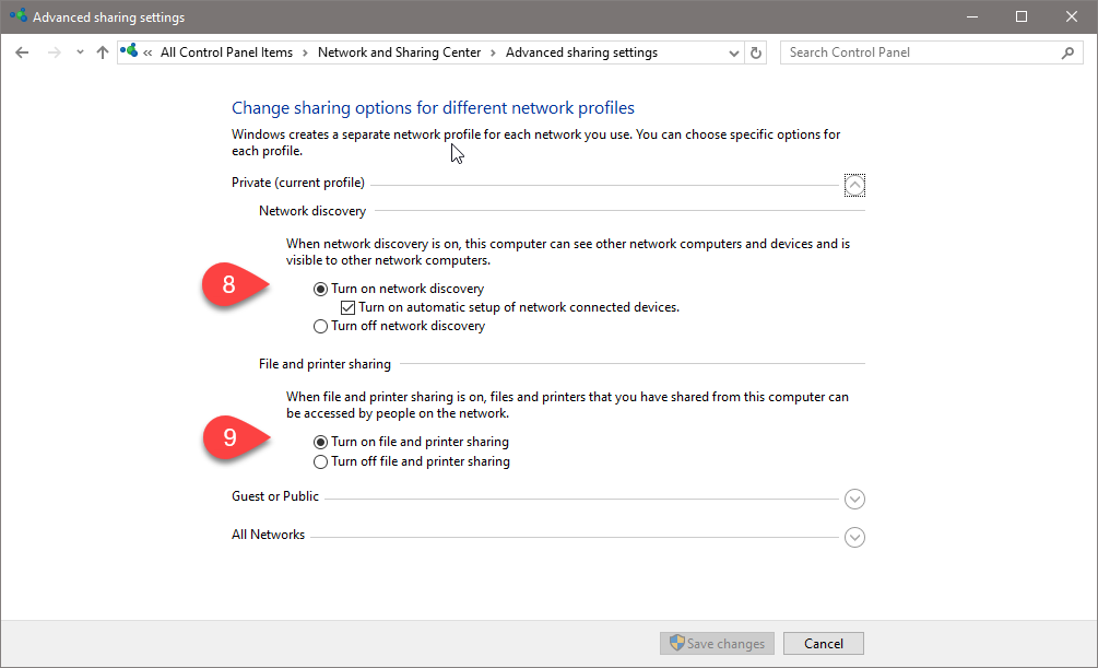 The computers need to be on the same workgroup or domain, so they can see each other. Right-click on This PC, go to properties, then computer name to see the workgroup.