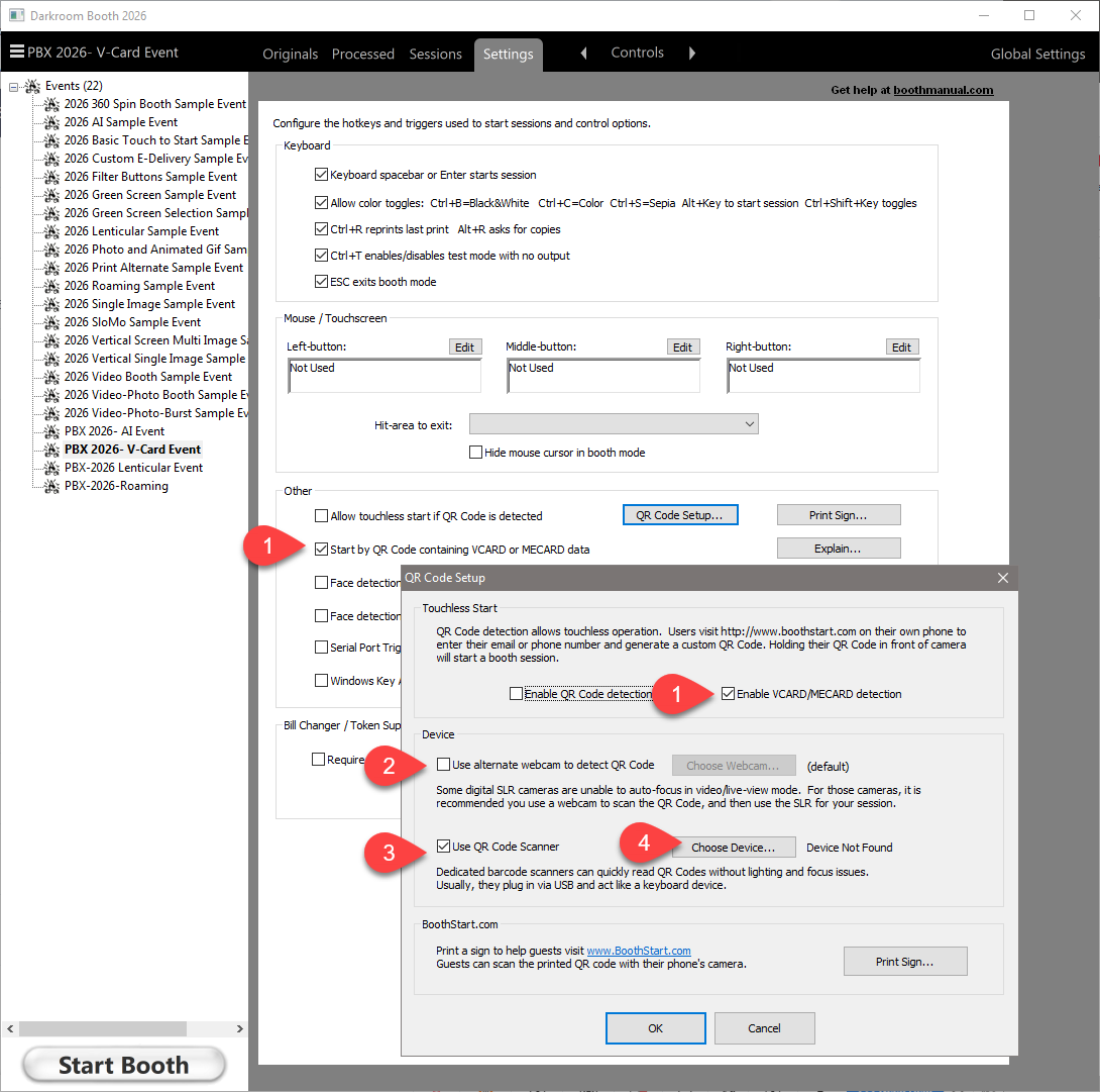 4. When using an external QR code scanner you will need to click "Choose Device" to pair the scanner with Darkroom Booth